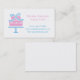 Das elegante Design eines rosa Kuchens mit blauem Band auf einem Kuchenständer. Diese elegante Visitenkarte eignet sich hervorragend für alle, die Kuchen, Gebäck und Bäckerei betreiben. Personalisieren Sie einfach Ihre Geschäftsdetails.