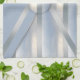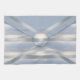 Aus einem Originalfoto von ZoeSPEAK eines stürmischen Himmels über dem Ozean, sieht das Design auf diesem Küchentuch wie ein Kissen-Umschlag aus, mit silbernen Bändern, die die sanften Hintergrundfarben von blasser Blues, Grau und Weiß kreuzen. Die Klappe der Hülle ist Stoff strukturiert grau blau mit einem silbernen Rand, und Bänder folgen den diagonalen Kanten. Horizontale Silberbänder kreuzen den Himmelshintergrund, und in der Mitte ist ein großer runder Knopfverschluss.