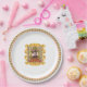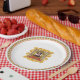 Aus einer originellen Serie von Entwürfen für klassische Musiksammler-Teller stammt das Paper Plate mit einem Portrait des Komponisten Richard Wagner. Das Portrait ist eine handgetönte Ätzung, umgeben von einer originalen Illustration eines verzierten Rahmens aus Goldbändern und Medaillons. Der Rahmen ist auf einem Hintergrund aus gelben und weißen Streifen mit roten Tomaten und grünen Blätter, die mit einem hellblauen Bogen verbunden sind. Unter dem roten Portrait ist der Name des Komponisten zu sehen. Die Tapete ist umgeben von mehr goldenen Bändern, in der Mitte der Platte vor einem weißen Hintergrund. Es gibt ein hellgelbes Band mit dem Tomatenmotiv und einen roten Rand um den Tellerrand.