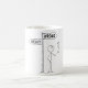 Eine Abbildung einer Person, die neben einem richtigen falschen Schildpunkt stehend ist. Dieses Design sieht auf dieser Tasse wirklich effektiv aus