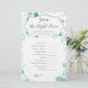 Diese Babydusche-Spielkarte verfügt über einen modernen Script-Schriftart auf einem blauen Punktehintergrund, der perfekt für einen kleinen Jungen ist!