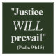 Beten Sie für Gerechtigkeit? Dann ist das das richtige Poster für Sie. Es steht "Gerechtigkeit wird siegen" aus Psalm 94:15, gedruckt in riesigen weißen Buchstaben auf einem coolen Jäger grünen Hintergrund.