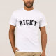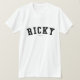 Ricky! Ist Ihr Name Ricky? Oder haben Sie einen Ehemann, einen Freund, ein männliches Familienmitglied oder einen Mann Freund genannten Ricky? Wenn ja ist dieses "Fahnen" Shirt genau nach das Geschenk, dem Sie suchen! Die Ausrüstungsbeschreibungen "Ricky" in gewölbter schwarzer Beschriftung über dem Kasten im klassischen Uni-Schriftart.
