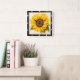Diese markante, quadratische Wanduhr besticht durch eine prächtige, detaillierte Sonnenblume mit lebhaften gelben Blütenblättern und üppig grünen Blätter. Die kühne, realistische Darstellung füllt den Rahmen und bringt die Wärme und Schönheit eines Sommergarten direkt in Ihre Zuhause, was ihn zu einem fröhlichen und natürlichen dekorativen Akzent macht.