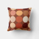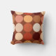 Kopfkissen in einem modernen geometrischen Druck von Riesenpunkten, in einem Gitter von neun aufeinander abgestimmten Farben - Bräunungsfarben, dunkelbraun, Rost, Terrakotta und Creme, auf einem schokoladenbraunen Hintergrund