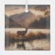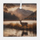 Sepia-Ton-Bild eines zwölf Punkte Racks auf einem Hirsch am Seeufer des Bergtals