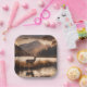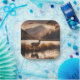 Sepia-Ton-Bild eines zwölf Punkte Racks auf einem Hirsch am Seeufer des Bergtals