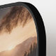 Sepia-Ton-Bild eines zwölf Punkte Racks auf einem Hirsch am Seeufer des Bergtals