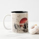 Riesenkuchen und Vogelskette bei Sonnenuntergang Zweifarbige Tasse