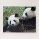 Riesenpanda-Bears essen Bambus und spielen Puzzle