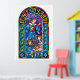 Weltfrieden Pre-Raphaelite Stil Weihnachtsriesen Poster. Illustriert im Detail in Aquarell und farbigen Bleistift, mit einem Buntglasdesign nach Burne Jones. Weltfrieden kann zu Weihnachten oder im Neujahr gegeben werden.
