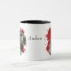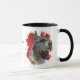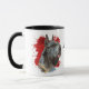 Ein wunderschönes Aquarellbild eines Riesenschnauzers hebt sich vor einem abstrakten, leuchtend roten Spritzer-Hintergrund hervor. Das Bild befindet sich auf zwei Seiten der Tasse, mit Ihrem Namen oder einem anderen benutzerdefinierten Text in schwarz.