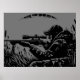 Bild eines Jägers mit seinem Gewehr für jeden begeisterten Jäger in schwarz auf grau oder dieses perfekte Geschenk für die Jagd Jagdfanatiker und Freunde. Poster.