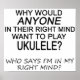 Warum sollte jemand in seinem rechten Geist Gewollt haben, Ukulele zu spielen? Wer sagt, ich habe recht? Obwohl die Kreativseite des Gehirns die richtige Seite ist, muss das nicht gemein sein, dass Musiker in ihrem rechten Geist sein müssen. Besuchen Sie unsere TemperfundamentalMusician Website für mehr musikalische Entwürfe!
