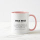 Diese Keramik Tasse bietet eine moderne Schriftart-Kombination und eine lustige Definition von "mama". Diese Kaffeetasse ist das perfekte Geschenk für deine Lieblingsmutter zum Geburtstag, als Baby-Duschgeschenk oder um sie am Muttertag zu beleuchten.