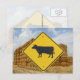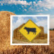 Foto eines Viehkreuz-Schildes in Utah auf einem Hintergrundbild von bläulichem, gestapeltem Heu mit blauem Himmel, puffigen Wolken. Viehüberquerung Bild Copyright 2016 von Margaret E. Cmelik.