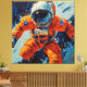 This vibrant digital art features an astronaut gazing into space.
