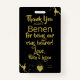 Personalisieren Sie das Abzeichen der Trägersicherheit mit dem Imitat goldverkleidet und Marmorakzente, einschließlich Dankeschön an den Foto-Bereich für Ihren Ringträger.