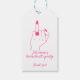 Add the perfect finishing touch to your bachelorette or hen party favors with this chic thank you gift tag. The design features a trendy pink illustration of the bride’s ring finger with a sparkling wedding ring, paired with elegant calligraphy script font. Personalize easily with the bride’s name for a stylish detail that makes your party favors extra special. A fun and modern choice for celebrating the bride-to-be!