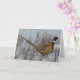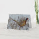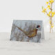 Ring-necked Fasan-Karte. Ein schöner männlicher Fasan im Schnee. Diese mehrfarbigen Vögel werden importiert und noch die schwere Zeit im Winter haben, besonders als tiefer Schnee es schwierig, Nahrung zu finden macht.