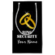 Ring Security Geschenktasche für Ehering Träger. Geschenktaschen mit Namen. Erhältlich in kleinen, mittleren und großen Größen. Doppelseitig bedruckt mit ineinander greifenden goldenen Hochzeitsringen. Fun Vorschlag Tasche für Junge oder Sohn, der an den Ringen bei der Zeremonie festgehalten wird.