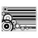 Einfaches Schwarzweiß-Grafikdesign aus Retroringen und Streifen. Das Design ist transparent, sodass Sie die gewünschte Hintergrundfarbe auswählen können. Bilder auf verschiedenen Geschenken und Produkten erhältlich.