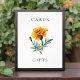 Ein schönes Ringelblumen-Hochzeitskarten-und-Geschenke-Schild für die Braut. Es enthält elegante minimalistische und moderne Boho-Wasserfarben-Designs in Gelb, Orange und Grün für Herbst-, Frühjahrs- oder Sommerfeiern.