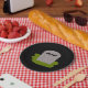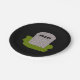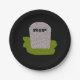 Diese phantastische Papierplatte ist mit einem grauen Grabstein mit RIP in schwarzem Party versehen, der auf einem grünen Grasflächen stehend ist. Der Hintergrund ist schwarz, passend zu diesem morbiden Design.