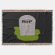 Diese phantastische Wurfdecke hat einen grauen Grabstein mit RIP, der schwarzen Text drauf tropft, stehend auf einem grünen Grasflächen. Der Hintergrund ist schwarz, passend zu diesem morbiden Design.