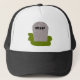 Dieser coole Hut hat einen grauen Grabstein mit RIP, der schwarzen Text drauf tropft, stehend auf einem grünen Grasflächen. Das Design wird hier auf einem schwarz-weißen Hut gezeigt, aber auch andere Farbkombinationen sind erhältlich.