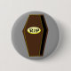 Dieser Knopf enthält einen gruseligen Sarg aus Holz mit Goldrand. Der Sargdeckel ist leicht offen und zeigt nur Dunkelheit. Die goldene Plakette auf der Vorderseite des Sarges hat einen sprichwörtlichen schwarzen Text, der RIP sagt und keinen Hinweis darauf gibt, wer oder was drinnen lauern könnte. Dieser lustige, aber finstere Sarg ist ideal zu Halloween. Der düstere graue Hintergrund zeichne das Auge des Beobachters in Richtung Särge des Untergangs.