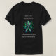 T-shirt to help spread awareness for Bipolar Disorder with a black, white and green striped awareness ribbon. An inspirational quote with the words, "Rising through the highs and lows." and "Awareness is the first step to understanding."