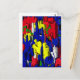 Postkarte, abstrakt, mit viel Blau das Risse enthält damit andere kraftvolle Farbdimensionen durchscheinen können.
