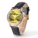 Uhr, Klassische Damenuhr mit schwarzen Lederarmband