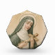 Ehefrau, Mutter, Witwe, Nun - St. Rita von Cascia (1386-1457) erlebte viele Bühnen des Lebens. Das Leben hatte jedoch eine Möglichkeit, sie zwischen einem Felsen und einem harten Ort zu setzen. Aus diesem Grund wird sie als Schutzheilige der verlorenen und unmöglichen Ursachen verehrt. Im Alter von 60 Jahren erhielt sie eine partielle Stigmata: eine chronische Wunde in der Stirn, als ob sie von einer Dornkrone stammte, die für die nächsten fünfzehn Jahre blutete. Das ist ihr Hauptmerkmal. + Fest: 22. Mai + Bildquelle (M 015): Antikes Bild von St. Rita [von Cascia] aus einem 1904 devotionalen Druck in Chromolithografie ursprünglich von A. veröffentlicht. B. [Albrecht & Meister von Berlin], Deutschland. Aus der Sammlung religiöser Ephemerien des Designers.