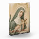 Ehefrau, Mutter, Witwe, Nun - St. Rita von Cascia (1386-1457) erlebte viele Bühnen des Lebens. Das Leben hatte jedoch eine Möglichkeit, sie zwischen einem Felsen und einem harten Ort zu setzen. Aus diesem Grund wird sie als Schutzheilige der verlorenen und unmöglichen Ursachen verehrt. Im Alter von 60 Jahren erhielt sie eine partielle Stigmata: eine chronische Wunde in der Stirn, als ob sie von einer Dornkrone stammte, die für die nächsten fünfzehn Jahre blutete. Das ist ihr Hauptmerkmal. + Fest: 22. Mai + Bildquelle (M 015): Antikes Bild von St. Rita [von Cascia] aus einem 1904 devotionalen Druck in Chromolithografie ursprünglich von A. veröffentlicht. B. [Albrecht & Meister von Berlin], Deutschland. Aus der Sammlung religiöser Ephemerien des Designers.