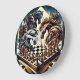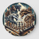 Das Design stellt eine faszinierende und fantasievolle Schachszene dar, in der Pferde mit eindrucksvollen Manen und detaillierter Rüstung über einem Schachbrett versammelt werden. Die Pferde scheinen strategisch in das Schachspiel involviert zu sein, was eine starke symbolische Verbindung zum Ritter im Schachspiel schafft. Der Stil ist eine Mischung aus Vintager Gravur und moderner Illustration mit dynamischen Linien und dramatischen Farbtönen in Blau, Gold und Braun. Das Design vermittelt eine mystische und strategische Atmosphäre, die sich perfekt für Schachfreunde und Fantasy-Liebhaber eignet.