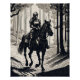 Ritterweibchen auf einem Pferd im Wald Poster