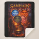 Embrace the ancient magic of the season with this stunning sewing Gothic fantasy blanket this intricate masterpiece features for elemental moon faces watching over a dark ritual scene filled with witches bubbling cauldrons skeletons and mythical creatures set against the backdrop of swirling fire and shadow this high detailed illustration perfectly captures the mystical spirit of the thinning veil