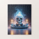 Ein geisterhaftes Glühen beleuchtet eine unheimliche Szene: Ein Schädel, der ein wenig zu fröhlich für sein wackeliges Selbst aussieht, ist von einem Trio von Kerzen umgeben. Zwei von ihnen sind in extravaganten kleinen Haltern, aber der dritte ist nur, auf einem Teller abzukühlen. Es gibt auch eine Rose, die ein bisschen verwirrt aussieht, und ein paar zufällige weiße Sachen, die Wolken sein könnten, oder vielleicht sind es nur Baumwollbälle. ... Es ist wie ein Wellness-Center mit einem Schädel-Thema, aber ohne Gurkenscheiben....... oder vielleicht ist es nur ein Neumond und wir sind in der Stimmung