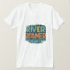 Der T - Shirt-Entwurf enthält den Text "River Roamer" in fett, bunten Buchstaben, mit einer detaillierten Abbildung einer Flusslandschaft im Hintergrund. Das Design ist perfekt für alle, die im Freien Lieben und sich gerne auf dem Wasser vergnügen.