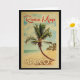 Ein einzigartiges Retro Mitte des Jahrhunderts moderne Riviera Maya Mexiko Kunstdruck in Vintage Reise Poster Stil. Es verfügt über eine geschwungene Palme am Sandstrand mit Ozean unter einem blauen bewölkten Himmel.