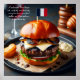 Erleben Sie eine Riviera-Rhapsodie der Aromen mit diesem sensationellen französischen Brie & Caramelised Zwiebelburger. Eine saftige Rindfleischpartie, die perfekt gesäubert ist, wird mit cremigem Brie-Käse, karamellisierten Schalotten und einem Dellop von Dijon aioli geschichtet, die alle in einen weichen Brioche-Knospen eingebettet sind. Eine französische Miniatur-Flagge ergänzt die Touch des französischen Flairs, während ein Rotwein diese authentische französische Küche vervollständigt.