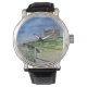 Uhr, Klassische Damenuhr mit schwarzen Lederarmband