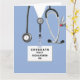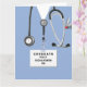 Kreative Krankenpflege Schule Abschluss Karten mit blauen Krankenhaus-Skulpturen, ein Stethoskop und Schweizer Armeemesser. So personalisieren Sie Text bearbeiten, um den Namen der Krankenschwester hinzuzufügen.