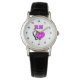 Uhr, Klassische Damenuhr mit schwarzen Lederarmband