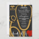 RN Krankenpflege Graduation Party Schwarz und Gold Einladung. Dieses Abschluss Einladungs-Design verfügt über ein Schwarz und Gold , und kann mit allen Informationen personalisiert werden, die Sie für Ihr Party benötigen.