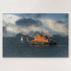 Die Crew RNLI Rettungsboots befindet sich in Devon, während die Airshow in Torbay auf dem Laufenden ist. Fotografiert zwischen den berühmten Thatcher Rocks. Ein paar Segelboote passieren das Schiff.