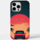 Ein Retro iPhone Gehäuse für Reisende. Das Retro-Auto, das vor dem neonfarbenen Sonnenuntergang mit tropischen Palmen fährt, ist in diesem Design zu sehen. Sie können den Text dieses Posters personalisieren.