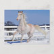 Ein roter Roan Tennessee Wanderpferd läuft im Schnee. Foto von Maggie Moore von Citadel Fotografic.com